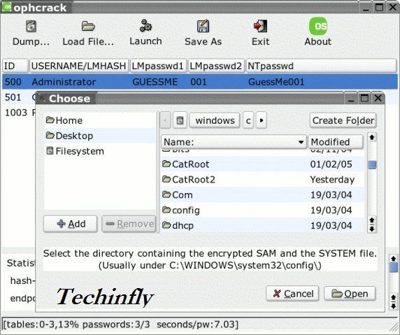 The Ophcrack Windows password cracker is by far the best free Windows password recovery tool available. It's fast and easy enough for a first time password cracker with a basic knowledge of Windows. With Ophcrack, you don't need any access to Windows to be able to recover your lost passwords. Simply visit the site, download the free ISO image, burn it to a CD and boot from the CD. The Ophcrack program starts, locates the Windows user accounts, and proceeds to recover (crack) the passwords - all automatically. In a test on a Windows 7 PC, Ophcrack recovered the 10-character password to my administrator account in 40 seconds. Ophcrack supports Windows 7, Windows Vista, and Windows XP.